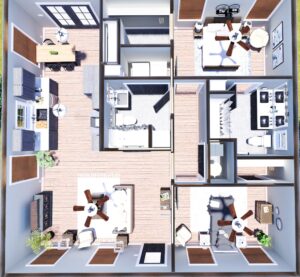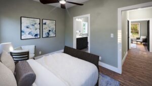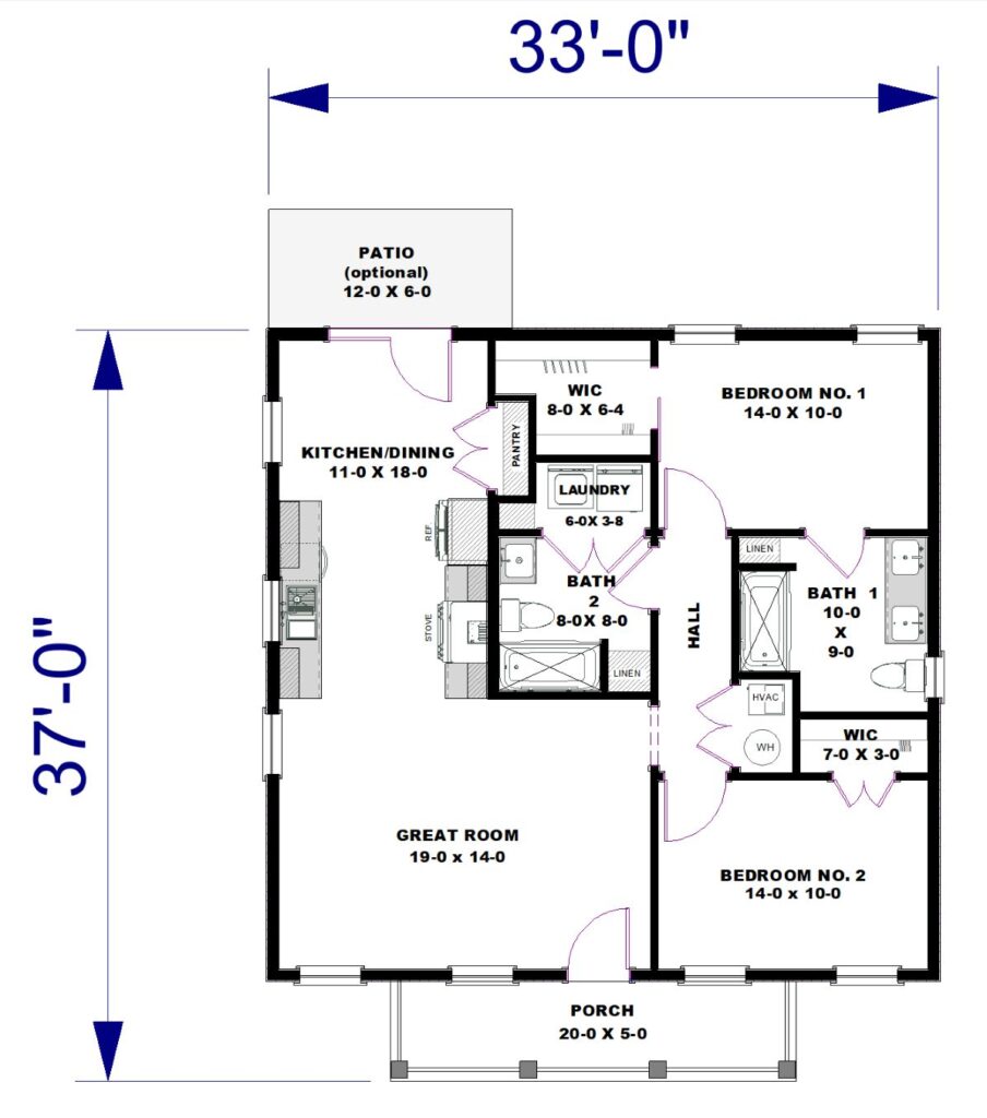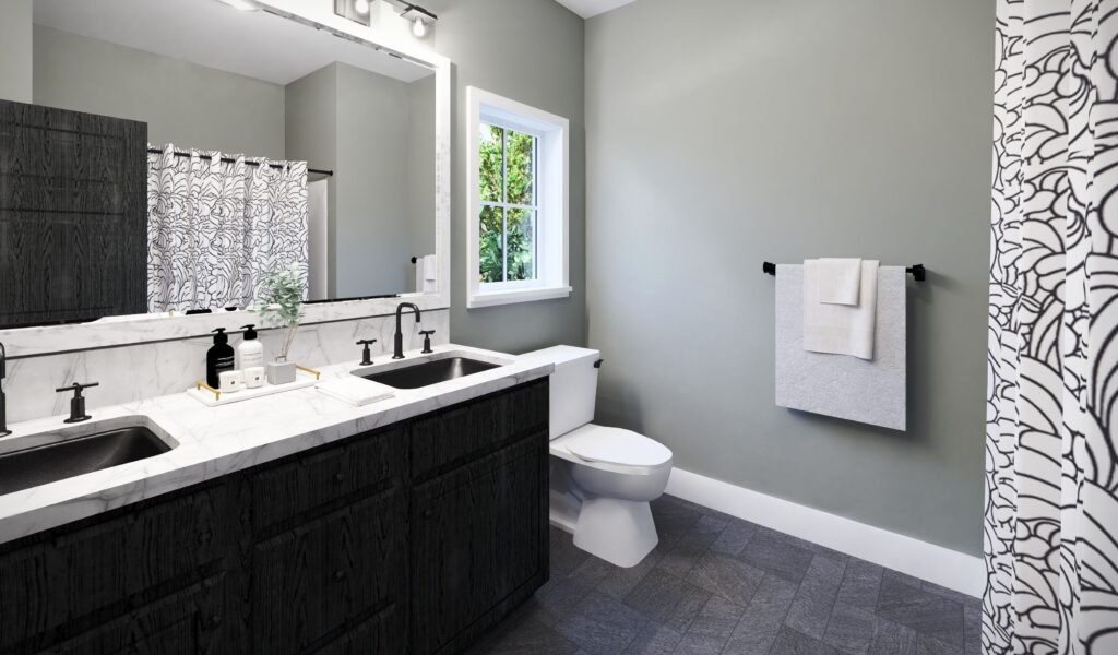 This 1,056-square-foot home offers a perfect blend of charm, efficiency, and comfort. With an open-concept layout, two bedrooms, and two bathrooms, it’s ideal for small families, couples, or anyone looking for easy, single-level living with thoughtful details throughout. Bedroom 1 features its own private bathroom & walk-in closet, providing the perfect layout for family members who value their own space. Bedroom 2 has a walk-in closet & a shared Bathroom located in the hallway for guests. The Laundry area is located off from Bath 2 for easy access. A welcoming front porch on the home creates a cozy outdoor living space that invites relaxation and curb appeal. Around back, an optional rear patio extends the living area outdoors – perfect for grilling, dining, or simply enjoying the view.
