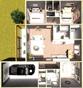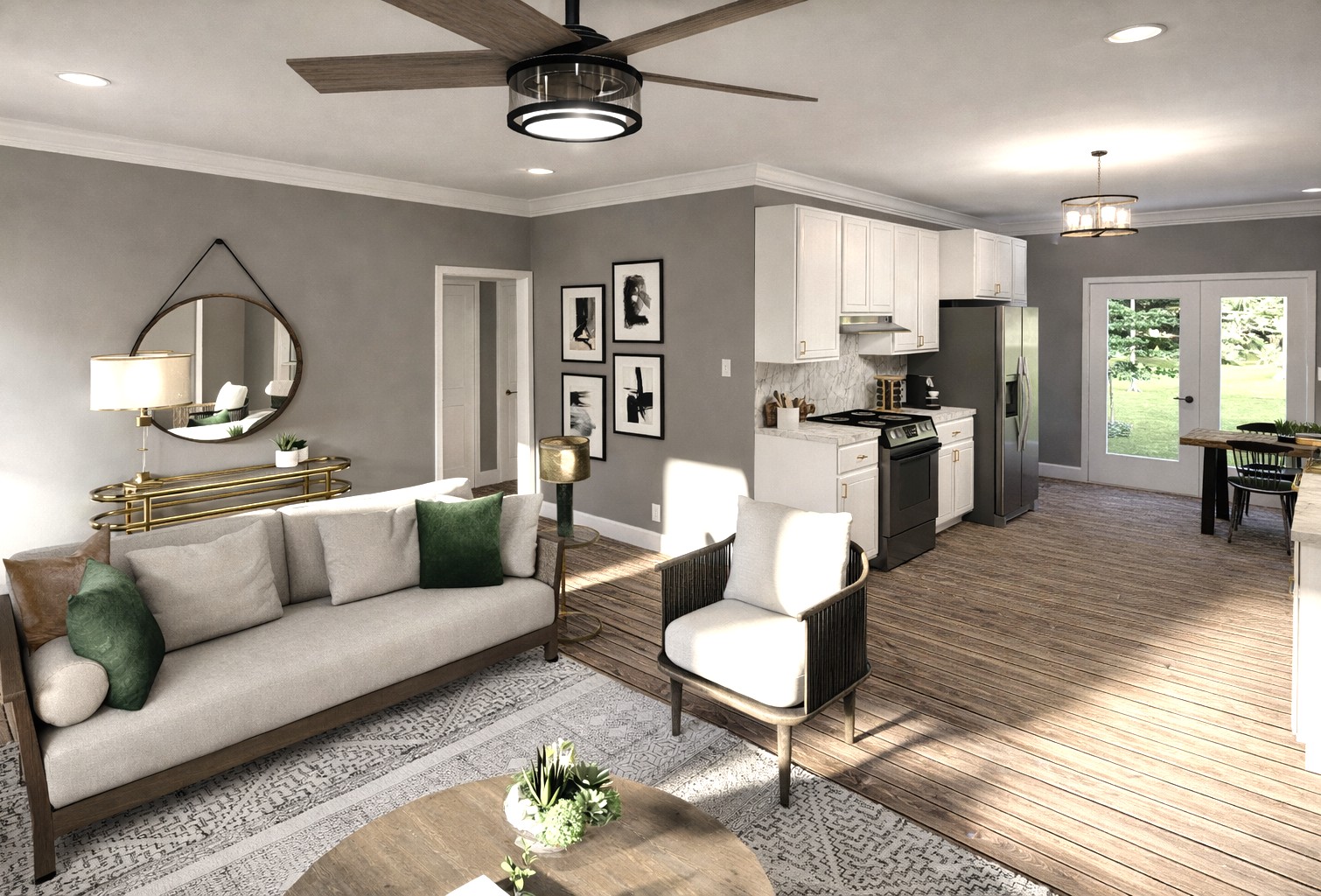 Welcome to this beautifully designed 3-bedroom, 2-bath plan offering the perfect blend of comfort, privacy, and style. This plan contains 1,340 square feet of heated living space, centered around a large great room that connects the living, dining, and kitchen areas, creating an open-concept layout ideal for everyday living and entertaining.