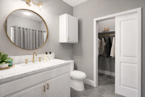 As you enter from a covered front porch, you are greeted by the Great Room that serves as the main living area and provides easy access to the kitchen, bedrooms, and hallway areas. Near the kitchen and hallway is a separate laundry room, keeping washer and dryer access convenient but out of the main living space. Bedroom 1 features its own private bathroom & walk-in closet, providing the perfect layout for family members who value their own space. Bedroom 2 and Bedroom 3 share a bathroom that includes a tub/shower, vanity and linen area. Bedroom 2 and 3 each have their own walk-in closet and a linen closet conveniently located in the hallway for extra storage. A one-car garage connects to the house through a hallway, providing protected entry into the home.