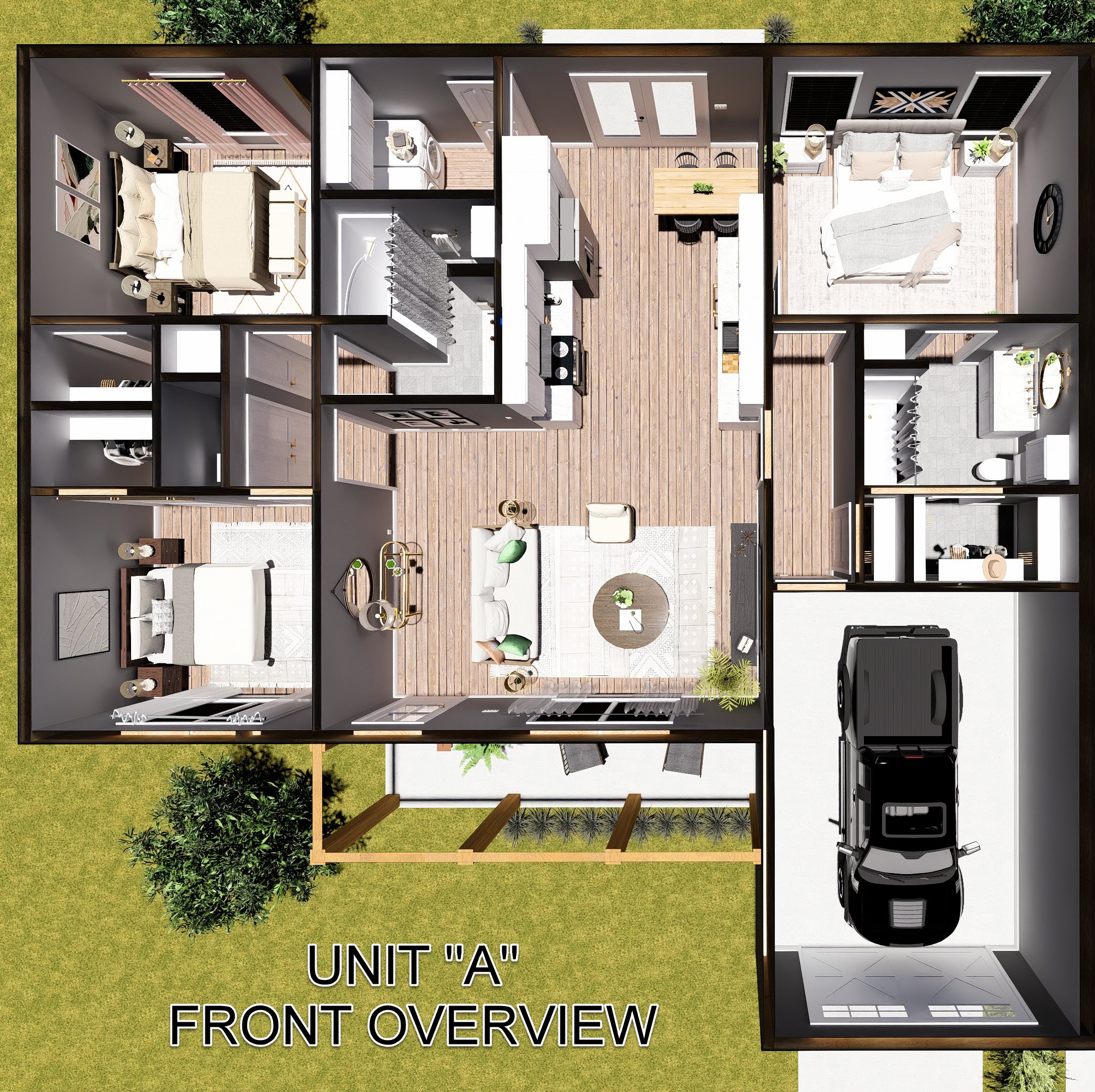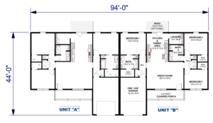 Welcome to this beautifully designed 6-bedroom, 4-bath duplex offering the perfect blend of comfort, privacy, and style. This multi-family plan contains 1,340 square feet of heated living space on each side with the layout centering around a large great room that connects the living, dining, and kitchen areas, creating an open-concept living space ideal for everyday living and entertaining.