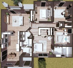 Welcome to relaxed living in this beautifully designed 1,612 square foot home. Perfectly combining style and convenience, this charming abode offers four spacious Bedrooms and two elegant Bathrooms. It includes an open concept Kitchen featuring a raised snack bar that seamlessly flows into the Dining area, perfect for casual meals or entertaining friends. Bedrooms 2, 3, and 4 share a full-size Bathroom equipped with double vanities, providing comfort and functionality, having direct access to the Laundry Room. Retreat to your Master Bedroom, complete with a full-size Bathroom, double vanities, and a spacious Walk-in Closet. It’s your personal haven for relaxation. A double bay Garage with an additional Storage Room ensures you have ample space for vehicles and all your storage needs.