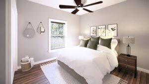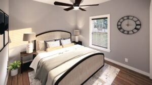 The Master bedroom is large and contains a private bath and walk-in closet.