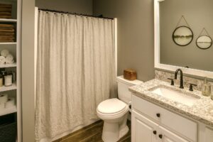 The two bedrooms have a shared bathroom conveniently placed between the two of them. There is also a linen closet in this hall for additional storage.